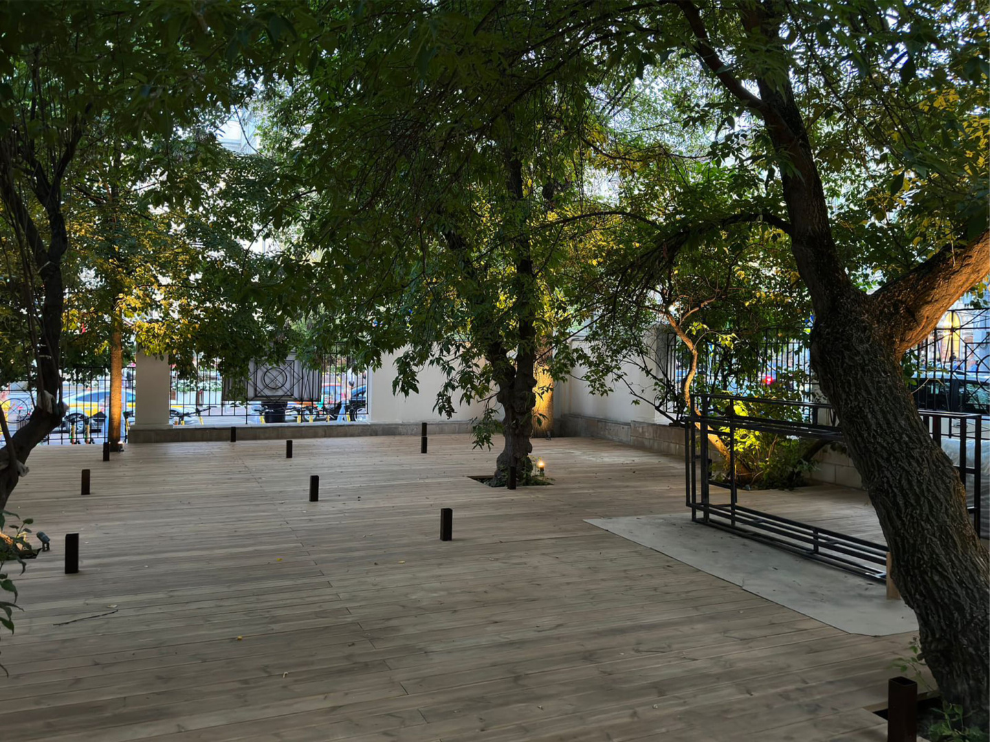 По всему периметру веранды ресторана установлены светодиодные светильники ALT-RAY-ZOOM (арт.028076), предназначенные для организации локального уличного освещения.