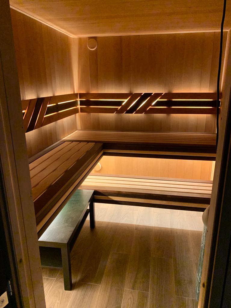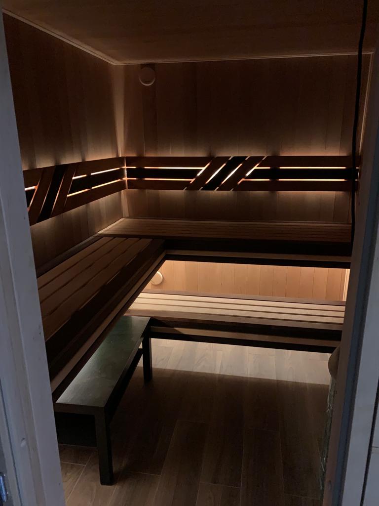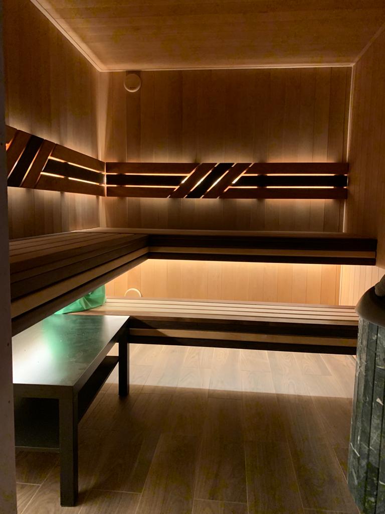 Для подсветки сауны была использована герметичная светодиодная лента RTW-5000PWT 24V Warm3000 13mm (артикул: 024289(1)) и блок питания к ней HTS-200L-24 (24V, 8.3A, 200W) (артикул: 020827).