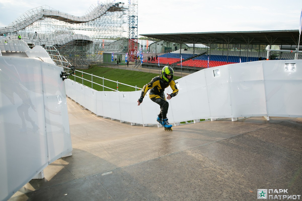 Первый в мире тренировочный комплекс для скоростного спуска на коньках и роликах открыт в парке «Патриот» г. Москва.