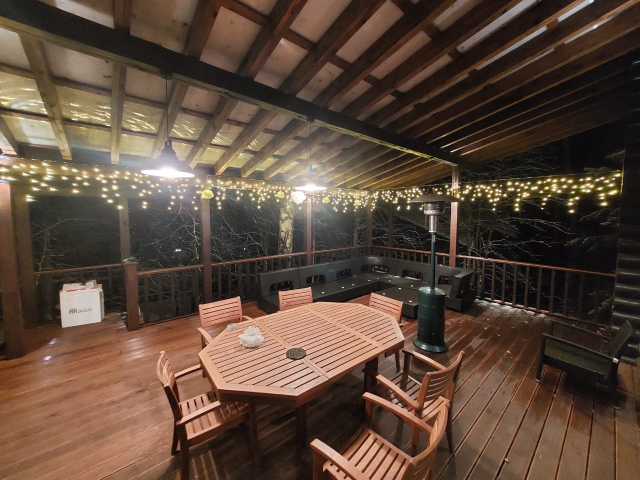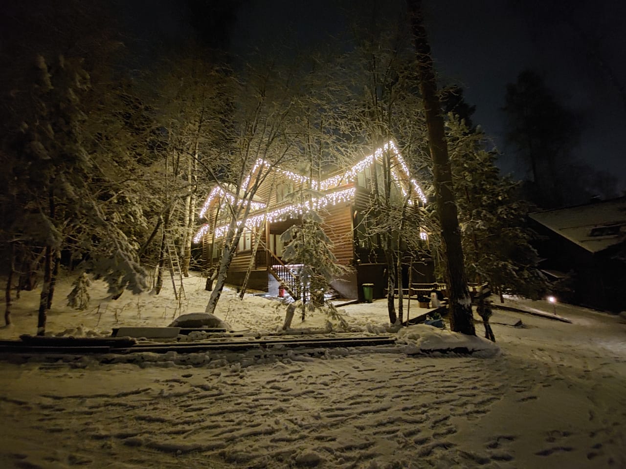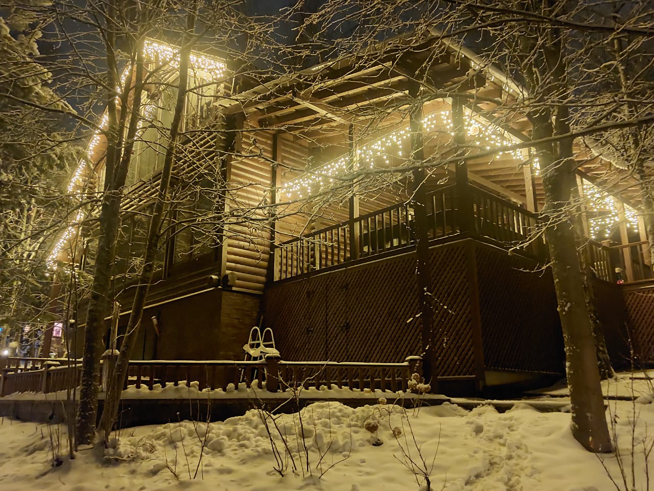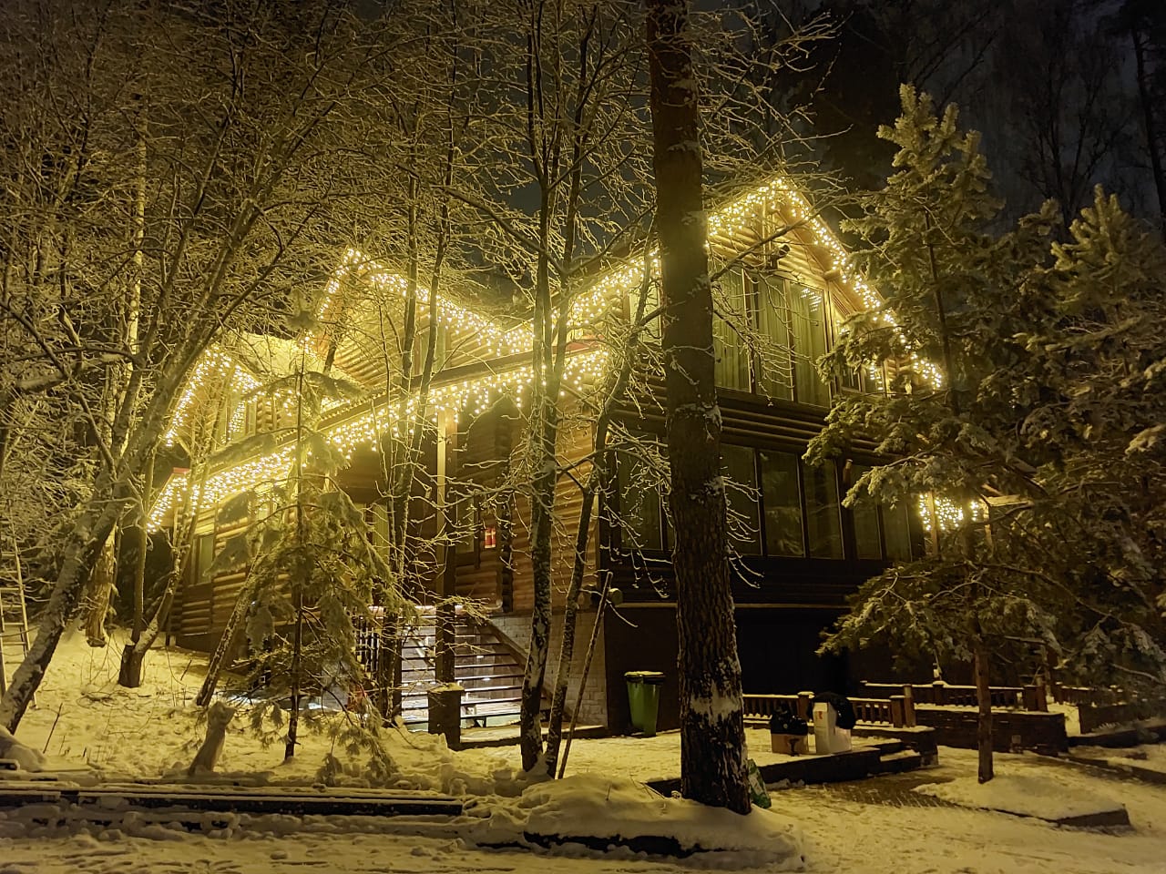 Подсветка загородного дома гирляндой "Бахрома"