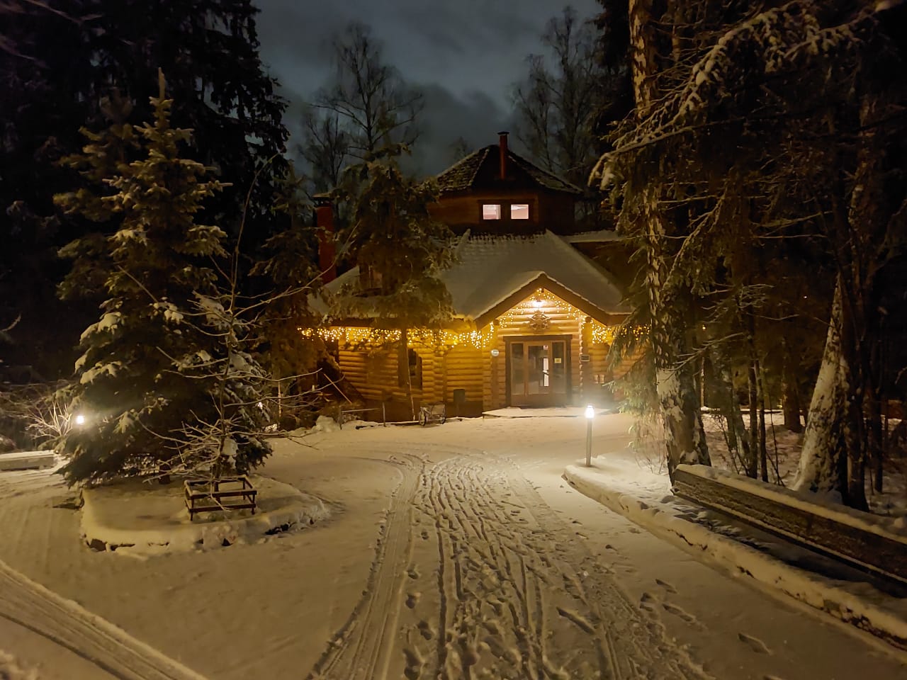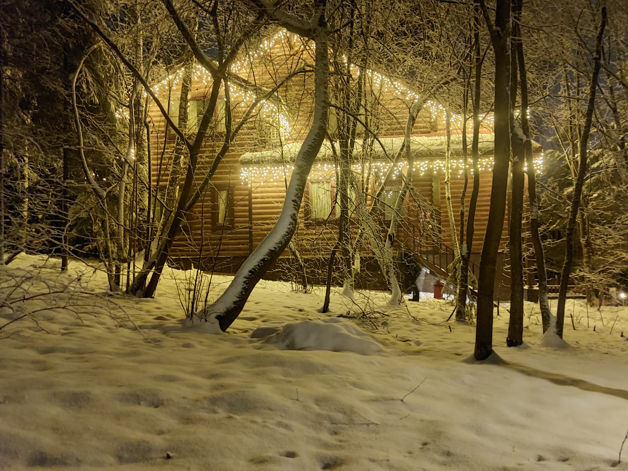 Для подсветки контуров крыши по всему периметру дома использовалась гирлянда ARD-EDGE-CLASSIC-2400x600-BLACK-88LED-MILK-STD Warm